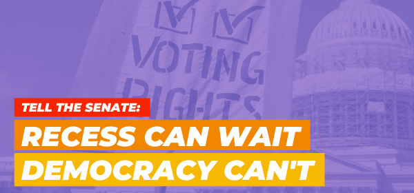 The Senate must not leave for their August congressional recess without passing the For the People Act, even if that means delaying recess. Their recess can wait – our democracy can’t.