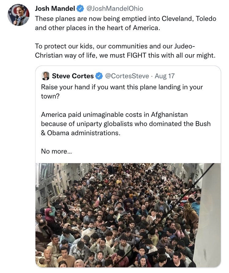 Refugees are welcome in Ohio, and the people of Ohio deserve real, empathetic leadership — not Josh Mandel, an overtly racist person.