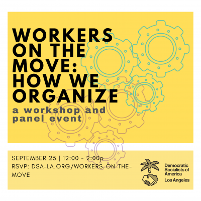 The following list is only a highlight of what's happening this week with DSA-LA. Please check out our online calendar for full list of committee meetings & chapter events! Be sure to also follow our Instagram & Twitter for real-time announcements and calls-to-action!