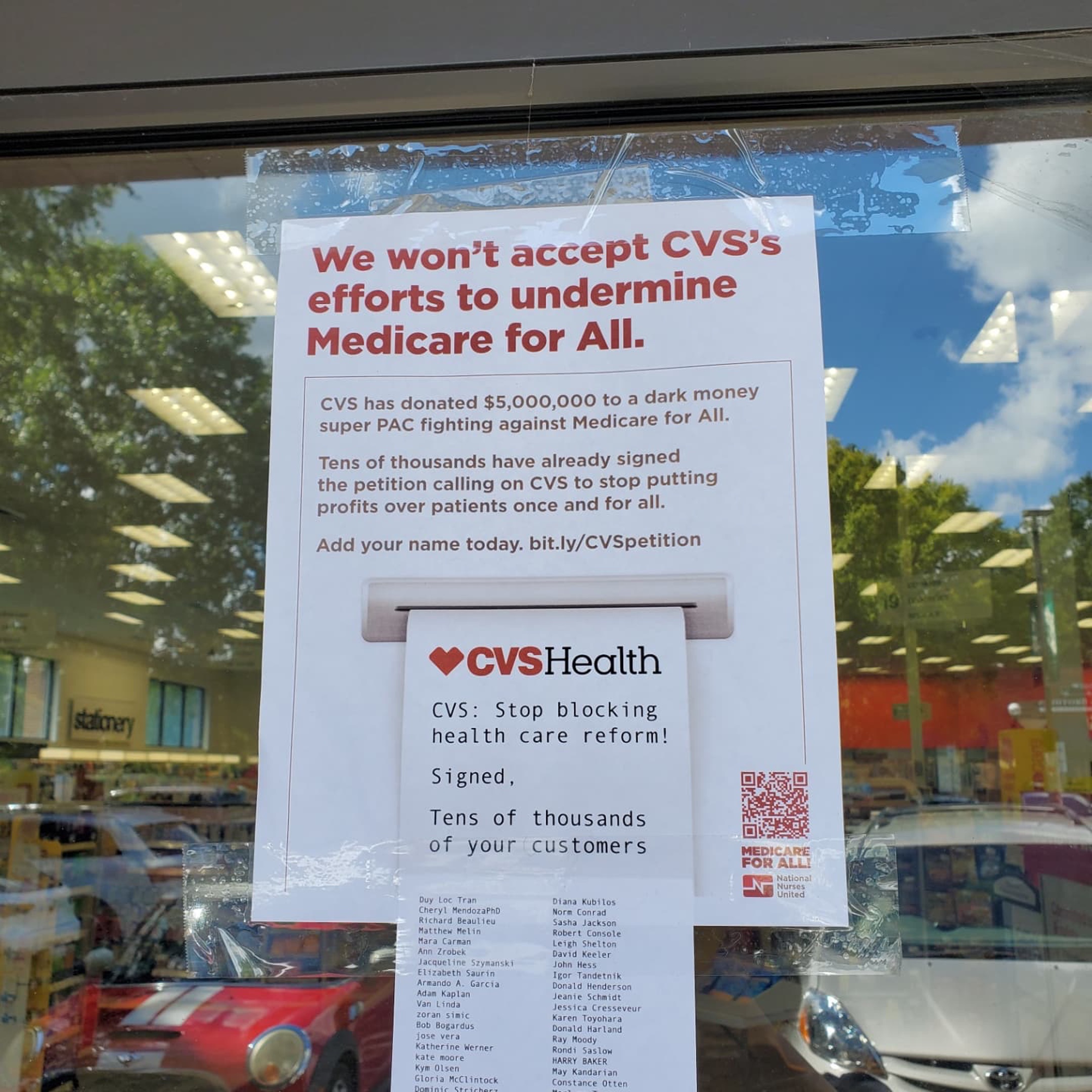 Last month, hundreds of activists and nurses in 27 states took action at CVS locations across the country as part of our National Day of Action. Together we demanded that CVS stop funding anti-Medicare for All efforts – bringing CVS style “receipts” with the names of thousands of activists standing with us.