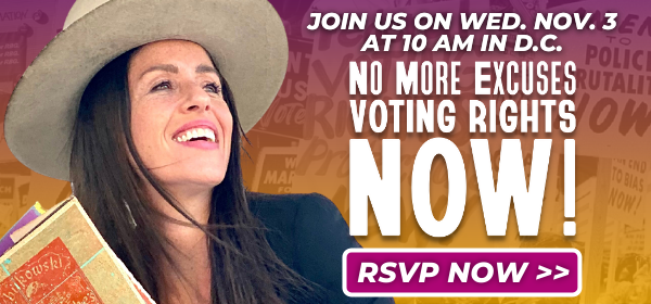 Dear People For Supporter, Today we're taking the fight for voting rights back to the White House, with a youth-focused event to tell President Biden: no more excuses. We need voting rights legislation passed now! We'll be joined by civil rights leaders, youth activists, actor Soleil Moon Frye (who, along with her daughters, will be risking arrest with us), and others... No matter where you are, here are three easy things you can do to support this important fight at the same time we're rallying at the White House.