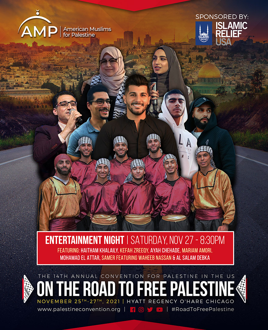 Entertainment Night: We like to save our best for last! Sponsored by Islamic Relief USA, this year's highly-anticipated entertainment night will feature "Arab Idol" finalist and Palestinian artist Haitham Khalaily, along with Palestinian singer Kefah Zreeqy, Samer featuring Waheeb Nassan, Spoken-word artist Ayah Chehade, Poet Mariam Amori, and the amazing folkloric group Al Salam Debka. Our emcee for the night will be comedian Mohammad Al-Attar. |