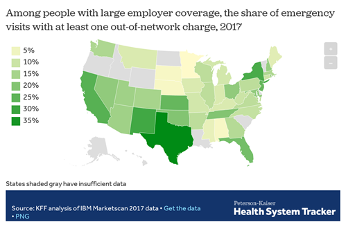 These charges occurred more frequently in some states than in others. Patients in Texas, California, New Mexico, New York and Kansas were more likely to report having a surprise medical bill than the rest of the country. The analysis comes as state and federal lawmakers move to address the issue.