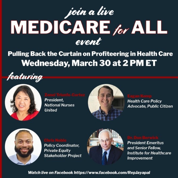We need to build on our momentum and continue to spread the truth about Medicare for All. That’s why you’re invited to join the LIVE Medicare for All Congressional Caucus briefing tomorrow, March 30, at 2:00 pm ET/11:00 am PT.