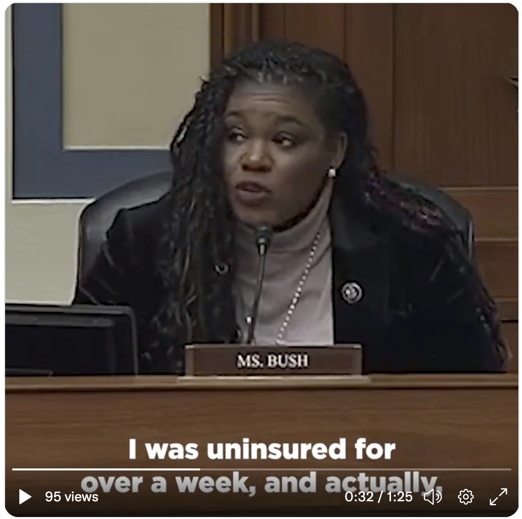 As Rep. Cori Bush said, “For some people, it’s hard to imagine rationing expensive medication like insulin, skipping dialysis appointments, foregoing surgical procedures, or refusing medical care entirely. People are having to choose between their life or a lifetime of medical debt – and that’s not okay.”