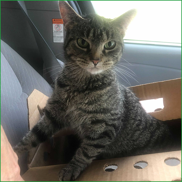 Petite, on the ride home, the day we rescued her from USDA’s Kitten Slaughterhouse