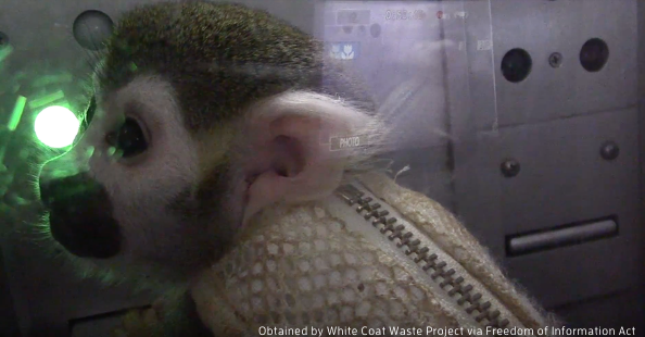 Baby Squirrel Monkey photographed in the FDA’s nicotine addiction experiments