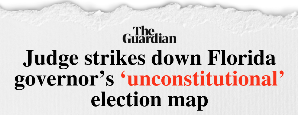 The Guardian: Judge strikes down Florida governor’s ‘unconstitutional’ election map