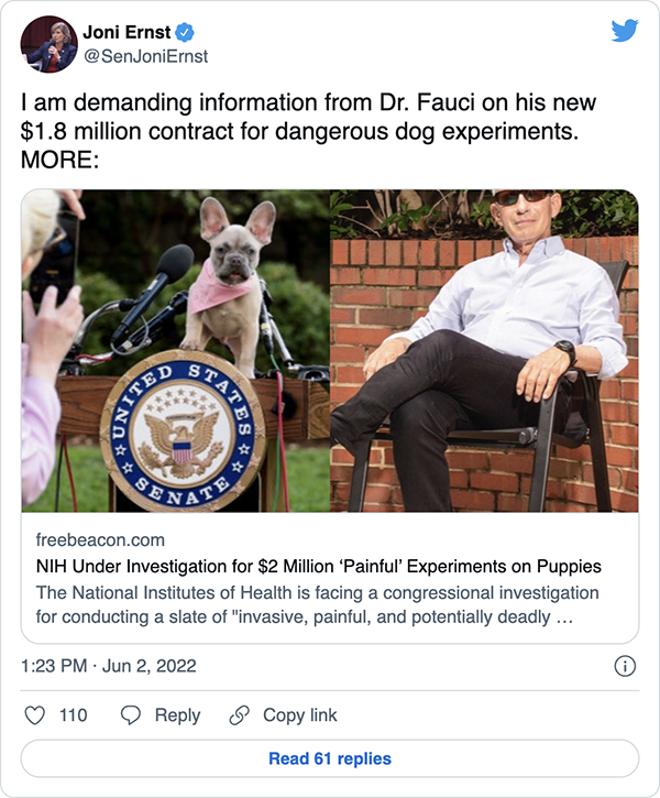 - Fauci’s dog experiments make elected officials of both parties, as well as the American people, very unhappy.