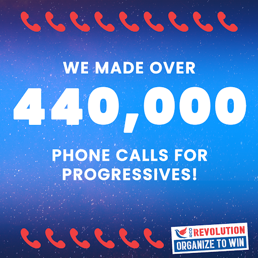 This primary season, Our Revolution Phonebank Force has made 443,876 calls to voters across the country! We’re recruiting as many folks as possible to make calls to get us to that half-million mark and beyond!