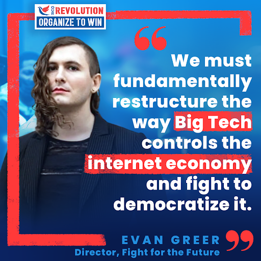Fight for our Future Director Evan Greer revved up the folks on our national organizing call, emphasizing the huge opportunity we have to pass real antitrust legislation.