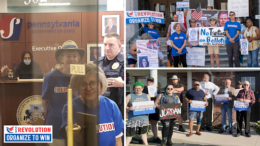 That’s why Our Revolution members are hitting the streets to demand that Secretaries of State enforce the Constitution and bar criminal insurrectionists from the ballot.