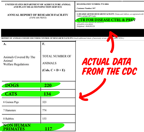 Documents obtained via a White Coat Waste Project (WCW) investigation show that CDC white coats abused thousands of dogs, monkeys, rabbits, and other animals in taxpayer-funded experiments last year. In some cases, pain relief is completely withheld.