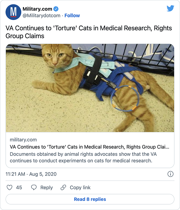 Last August, we discovered a funding deadline for kitten experiments at the Stokes VA Medical Center.