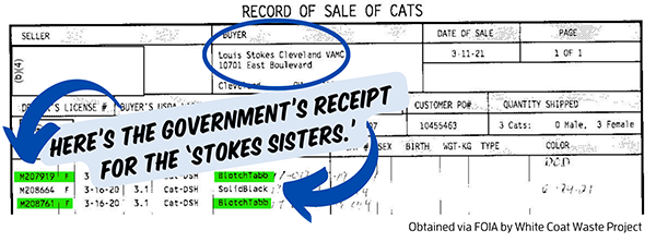 The Stokes VA Medical Center (VA) in Cleveland purchased these kittens for experimentation. So, the ‘Stokes Sisters’ spent their lives in a government lab.