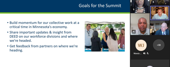 Mike Lang from DEED’s CareerForce division talked about key learnings from recent visits to all 16 Local Workforce Development Areas across Minnesota. Key takeaways: we need to continue striving to maximize services without duplicating them and ensuring that job seekers who need additional support to prepare for and find employment have smooth and supportive referrals.