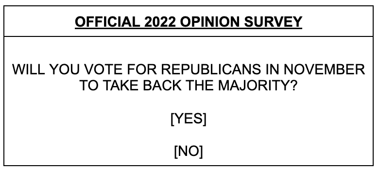 Please complete the Official 2022 Opinion Survey IMMEDIATELY to help us take back the majority in November. >>