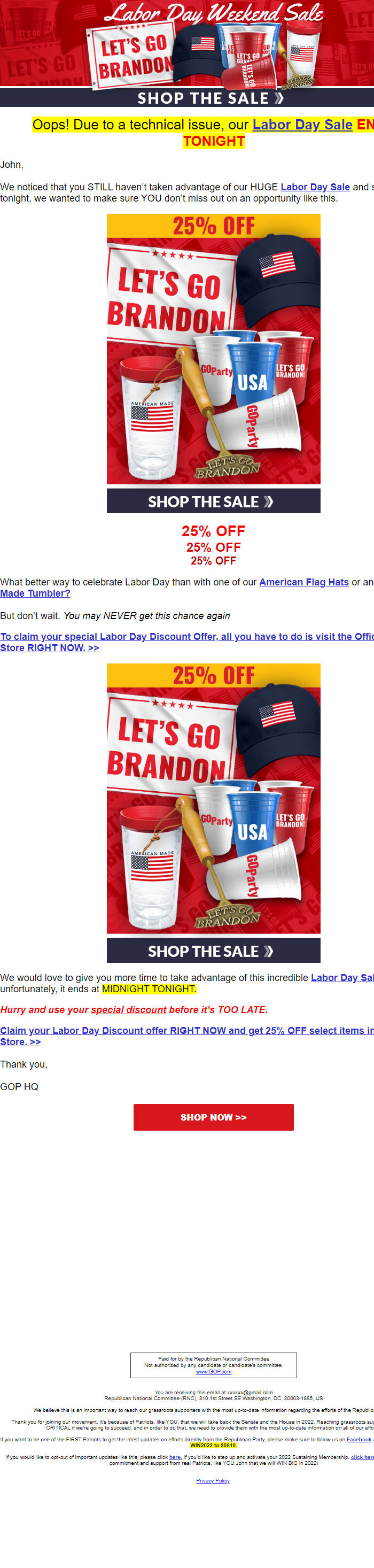 To claim your special Labor Day Discount Offer, all you have to do is visit the Official GOP Store RIGHT NOW. >>