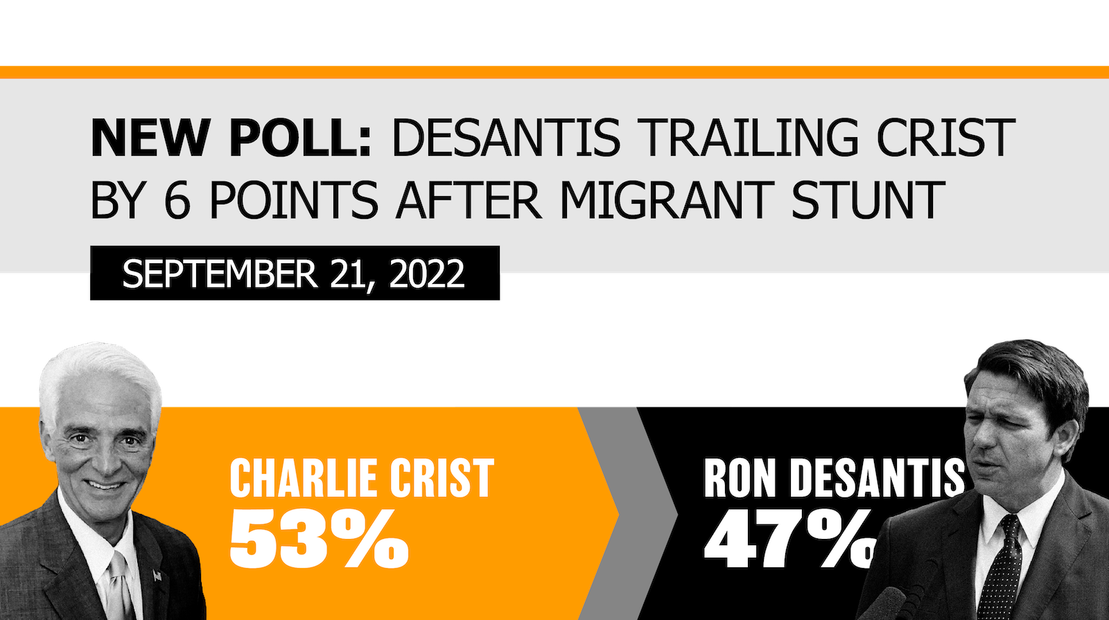 New poll: DeSantis trailing Crist by 6 points after migrant stunt | Date: Sept 21 | DeSantis: 47, Crist: 53