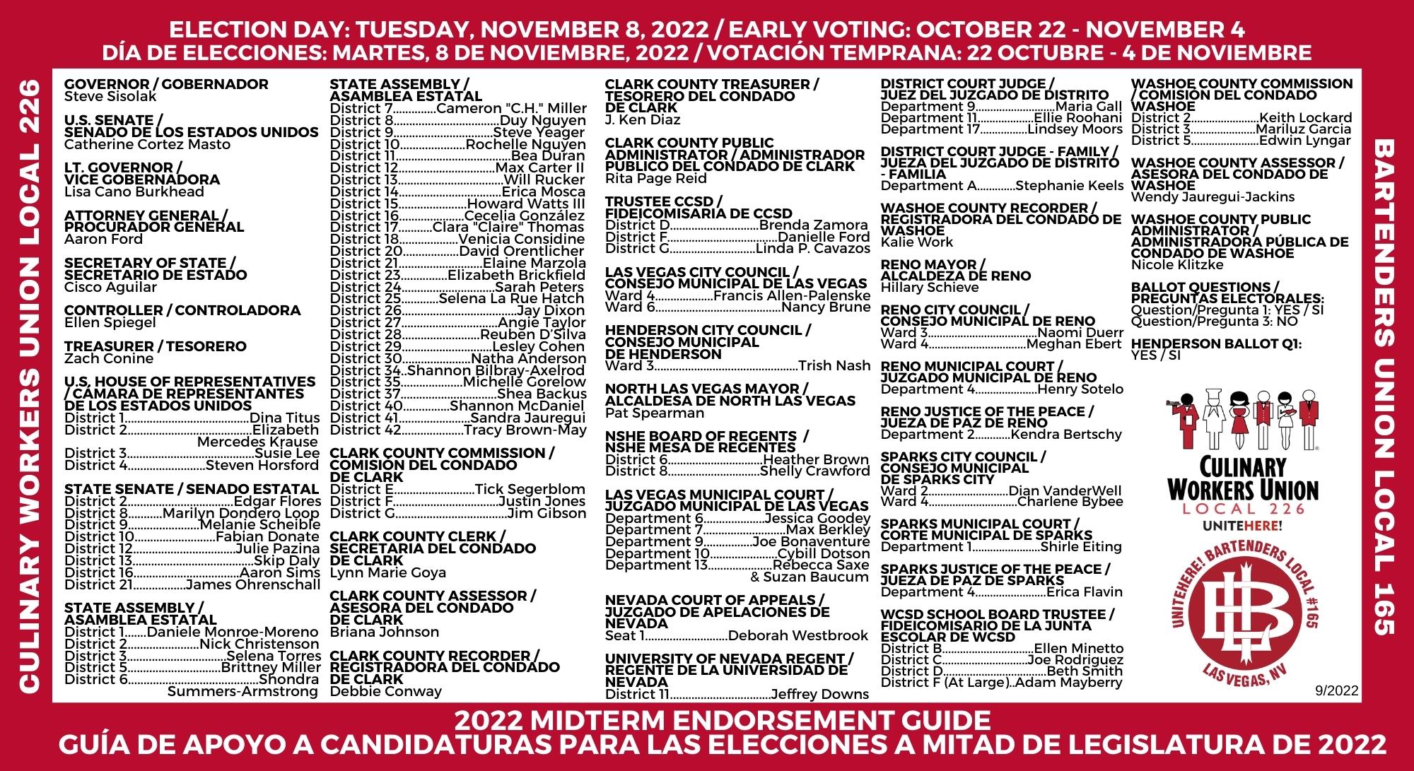 Más de 260 miembros de la Unión Culinaria tienen permiso de ausencia política para hacer campaña en todo el estado y están en camino de tocar más de 1 millón de puertas en Reno y Las Vegas, incluida más de la mitad de los votantes Negros y Latinx y más de un tercio de los votantes de AAPI en Nevada.