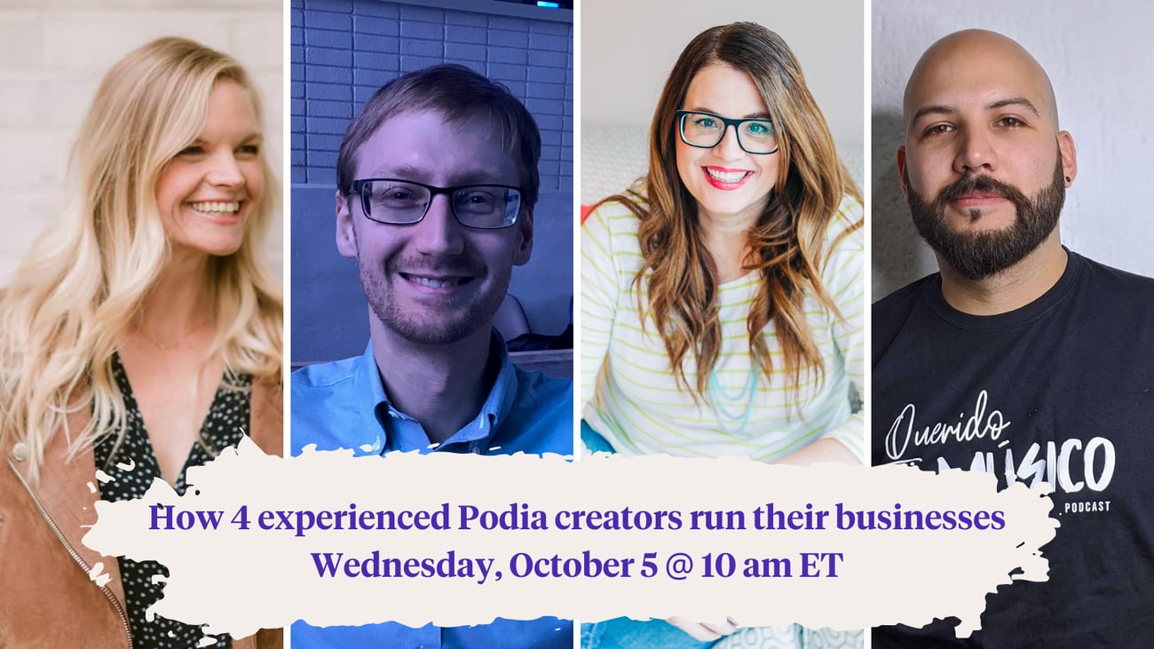 Join us on Wednesday, October 5th at 10 am ET for a panel with Podia’s Creator Community ambassadors, where they will discuss lessons they’ve learned about growing their businesses and announce the winner of the fellowship live. 🎉