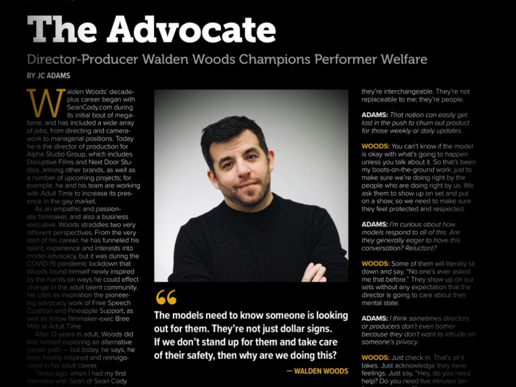 Director-Producer Walden Woods Champions Performer Welfare (XBIZ) |