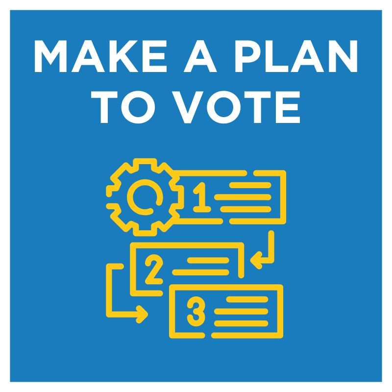 Below we have resources where you'll be able to register to vote, check your voter registration status, find your polling location and make a plan to vote.