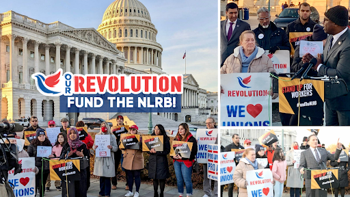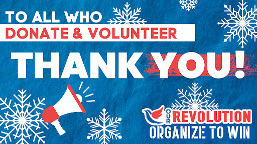 HEADLINES: 2022 Recap | Battles Ahead: Climate, M4A, Worker Power & More | Dirty Deal Dies Again | Fund the NLRB! | Defending Democracy | Party Power | & MORE! ★ ★ ★ A SPECIAL NOTE TO OUR REVOLUTION SUPPORTERS Thank you. If you donated, volunteered, joined a rally, or took action in 2022, you helped make it a year of advancement for the progressive movement. Despite painful blows from corporate Dems and Republicans, we’ve made policy gains we can build on in the year to come — on climate, drug pricing, and more. And, together, we overcame right wing and big money interests to flip a Senate seat in PA, win the Georgia Runoff, and elect 9 new House progressives. READ OUR 2022 RECAP BELOW We’re fighting to the end in 2022 to Fund the NLRB and Stop Manchin’s Dirty Deal, but many important battles lie ahead. Our Revolution has an exciting year planned in 2023 — from building local power and labor power to the fights for wages, housing, Medicare for All, and more. Stay tuned for the return of the Revolution Report on January 7th, 2023! And kick off the New Year with us on our National Organizing Call on January 9th! We truly appreciate your support of Our Revolution and hope you’ll consider becoming a member. Recurring monthly donations provide the stable resources we need to invest for 2023. ★ ★ ★ ★ ★ ★ CHANGE CAN’T WAIT Members of Our Revolution are making change happen. Against intense corporate opposition, our inside-outside strategy is moving the ball forward, but the clock is ticking. In 2022, we put our demands on the table and got Congress to take steps to tax corporations, let Medicare negotiate drug prices with Big Pharma, and invest in renewable energy. We also saw a right wing Supreme Court overturn Roe v. Wade and we saw Democratic leadership cave to corporations to force a contract on rail workers and water down the legislation we did get. People and the planet can’t wait. We’re forging the strongest, most effective movement we can to make our government empower workers, expand democracy, deliver on healthcare, and save the planet. We must organize to win, and that requires people-power. Join as an active member of Our Revolution to help us scale up for the tough fights in 2023. ★ ★ ★ 2023 EXECUTIVE ACTIONS In 2022, President Biden used executive action to expunge federal marijuana convictions, enact gun safety measures, and try to pass student debt relief. With a Republican House in 2023, he needs to do much more, starting with paid sick days for rail workers. Biden can hold corporations accountable for price gouging, wage theft, workplace safety and retaliation — and ensure union rights for federal contractors. He can also ban drilling on federal lands, stop fossil fuel exports, reduce healthcare/drug costs, close the carried interest loophole, and reverse Trump-era offshore tax loopholes. “If you think you’re going to rest on what you achieved so far, which is a step forward but not enough by any stretch, then we’ll have a serious problem in 2024,” Our Revolution comms and campaigns director Paco Fabian told The Hill. ★ ★ ★ CLIMATE Our Revolution remains at the forefront of the climate fight, partnering with Greenpeace and a coalition of 754 groups to defeat Manchin’s Dirty Deal three times. The renewable energy investments we got in the IRA are just a start. And, we’re ramping up our work to end fossil field subsidies — especially as they gouge us at the pump and rake in record profits! This year, President Biden enacted the Defense Production Act to spur domestic clean energy production, but that same day rewarded fossil fuel companies with a $10B tax break by suspending the gas tax. ★ ★ ★ DIRTY DEAL GOES DOWN! Because we can rely on the recurring donations from our grassroots supporters, Our Revolution activists were able to jump into rapid response to stop Manchin’s Dirty Deal THREE TIMES this year. Every time this zombie bill reared its ugly head, we mobilized our networks to mount a pressure campaign and demonstrate citizen opposition. Thank you to all who rallied with us on Capitol Hill and mobilized thousands of calls to Congress to stop this toxic deal to fast-track fossil fuel projects and gut protections for frontline communities. We joined our outside organizing work with support from elected leaders like US Reps. Rashida Tlaib and Ro Khanna in this fight, showing how our inside-outside strategy can win. Recurring donations give us the stable resources we can count on to jump into rapid response as policy fights and opportunities arise. ★ ★ ★ WORKER POWER 2022 was a big year for Labor — in spite of blows from corporate politicians blocking the PRO Act and siding with the bosses against rail workers. Our Revolution activists proudly joined Amazon, Starbucks, and other workers at protests and on picket lines, but we’ve also been organizing to win policies that build worker power. ★ ★ ★ Last summer, Our Revolution mobilized calls to flip CA State Senate votes, pressured Gov. Gavin Newsom, and joined with half a million fast food workers to win AB 257. This is a BIG deal! An industry-wide workers’ council is a step toward sectoral bargaining, and we can use this as a template for other states around the country. Our work with striking Maximus call center workers — seeking better pay and wages — will continue in 2023 as we won’t let Biden forget the need to help federal contractors unionize. ★ ★ ★ MAKE AMAZON PAY On Black Friday, Our Revolution led actions in cities across America as part of a global effort to Make Amazon Pay — pay their workers, their taxes, and for their climate damage. In NYC, we protested outside of Jeff Bezos’ penthouse; and in Washington DC, we rallied at Amazon Fresh. We stood in solidarity with 80 unions and groups striking and rallying in 32 countries — from Bangladesh to Germany to Colombia. ★ ★ ★ FUND THE NLRB! Last week, Our Revo