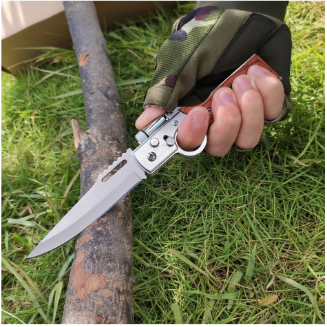 I mean, look at it, it’s a thing of beauty and it's push button open the knife lightning fast and even comes with a safety on it!