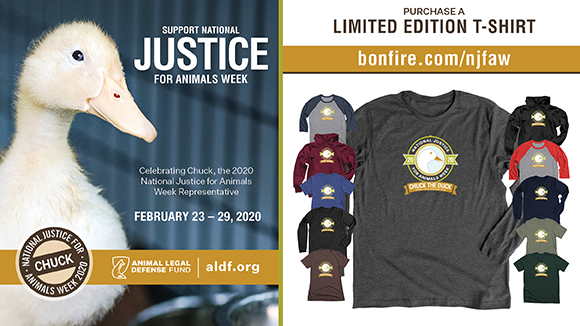 Join the Animal Legal Defense Fund for National Justice for Animals Week on February 23 to 29, 2020! This week is an annual event dedicated to raising public awareness about animal abuse, how to report it, and how to work within your community to create stronger laws and ensure tough enforcement. Request our free special tabling materials for this week by February 3!