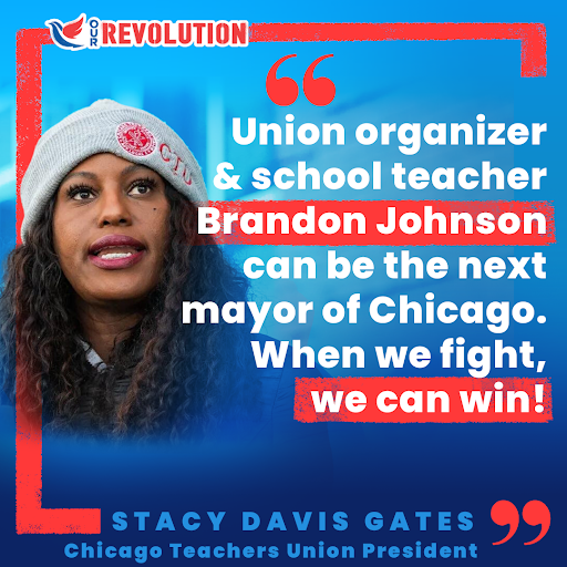 Our Revolution is backing Brandon Johnson, a former public school teacher and union organizer, for Mayor of Chicago.