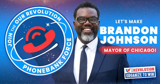 Sign up to help us call all 100,000 Our Revolution supporters in Chicago to tell them what’s at stake in this race! Let’s take this shot to elect Brandon Johnson as mayor of the third-largest city in America.
