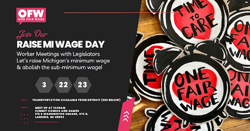 Our Revolution and our coalition will rally on Wednesday for worker meetings with legislators in Lansing, Michigan to raise the state minimum wage and abolish the subminimum wage.