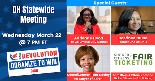 Also on the call, hear from Tara Mosley on her run for Akron Mayor and Adrienne Hood for Columbus City Council, and learn about Shaker Heights initiative for Fair Ticketing.
