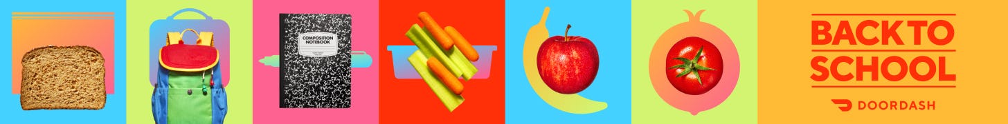 | | | | |  | | Presented by DoorDash | | The DoorDash Back-To-School Hub Has Everything On Your List & More | Gone are the days of running to the shoe store, then the office supply store, then the grocery store, then back to the shoe store again, because with the new DoorDash Back-to-School Hub, you can easily find everything you need from your favorite stores like ALDI, CVS, DICK’S Sporting Goods, Office Depot, Sprouts Farmers Market, Staples, and Walgreens — all delivered directly to your door in under an hour on average. Click around to discover deals on classroom supplies, clothes, sports gear, snacks, and more, and don’t forget that with DashPass, members get $0 delivery fees and access to exclusive savings! Make Back-To-School shopping stress-free with DoorDash. | |