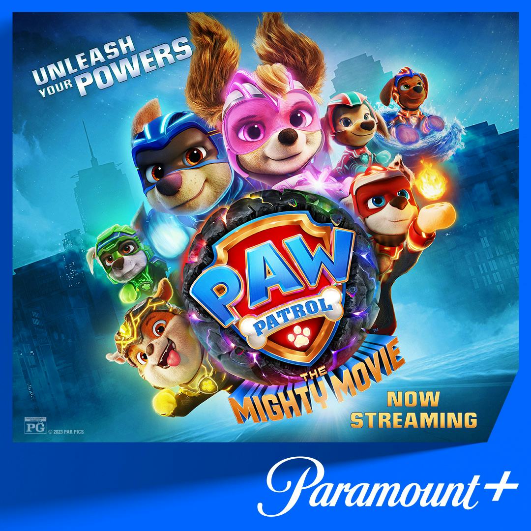 What has four legs, superpowers, and is now streaming on Paramount+? PAW Patrol: The Mighty Movie! When a magical meteor crash lands in Adventure City and transforms the PAW Patrol into The Mighty Pups, two supervillains team up to steal the new superpowers for themselves. With the fate of Adventure City hanging in the balance, the Mighty Pups must save the day once again. It’s a hilarious, action-packed adventure the whole family will love, and it’s undoubtedly the mightiest movie event of the year! |
