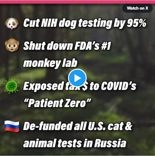 7. INTRODUCED legislation to cut the rest of NIH’s wasteful spending on dog and cat experiments.
