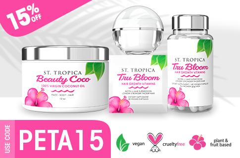 St. Tropica specializes in hair masks made with virgin coconut oil and exotic hair superfoods for your strongest, thickest, most lustrous tresses ever. Use code PETA15 for 15% off and fight the effects of stress on your hair.