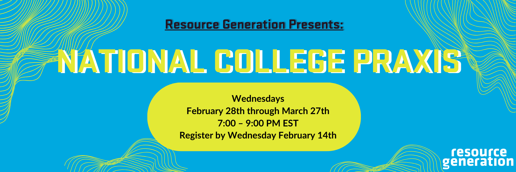 College Organizing is a really important piece of the work RG does! College campuses in the US are places where there are large concentrations of young people with wealth, and young people who are in training to go into fields where they will earn wealth wages. RG College Praxis is open to current students and recent grads both new and familiar with RG. If you have any questions, please email RG’s College Program Manager, keithlee, at [email protected]. |
