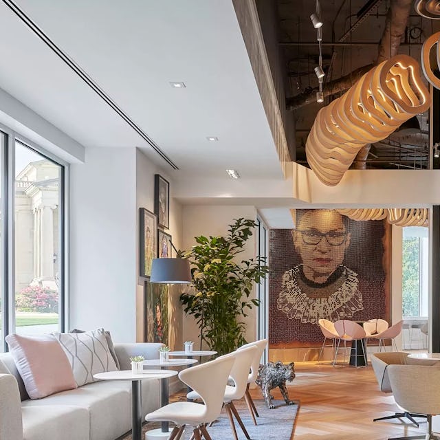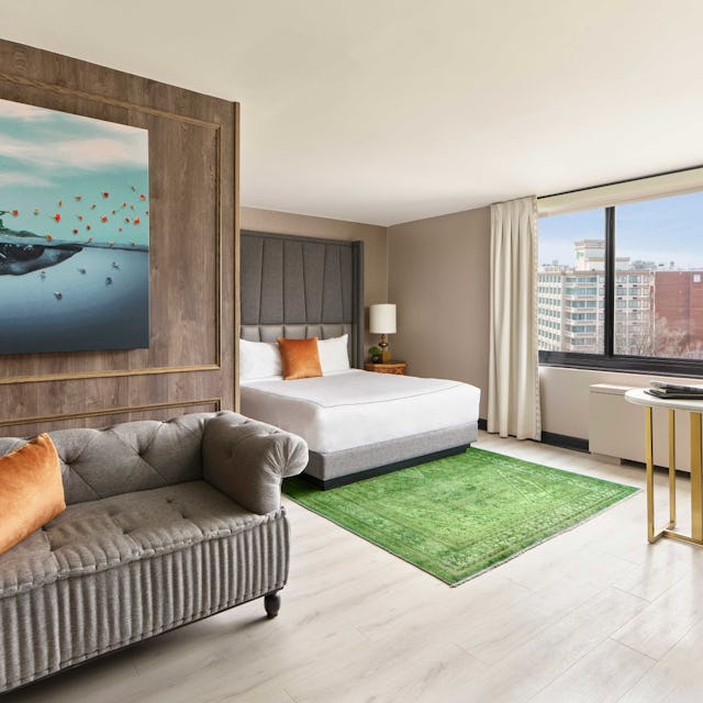 | | |  | | The Dupont Circle Hotel | This five-star hotel located in charming Dupont Circle has a simple exterior that welcomes guests into a next-level interior full of understated glamor, high-end hospitality, and colorful artwork. Featuring 327 rooms with marble baths, heated floors, and 300 thread-count linens, you’ll feel positively presidential for the duration of your stay. | |