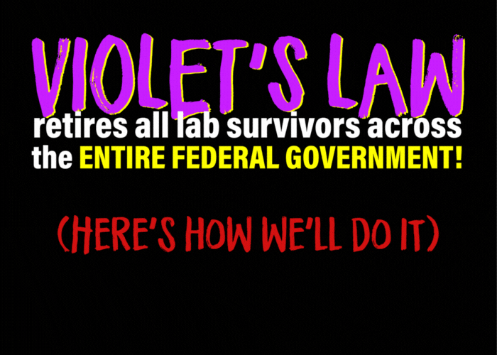 DEADLINE: Demand Congress put Violet's Law into the Farm Bill. It will retire and release ALL lab survivors.