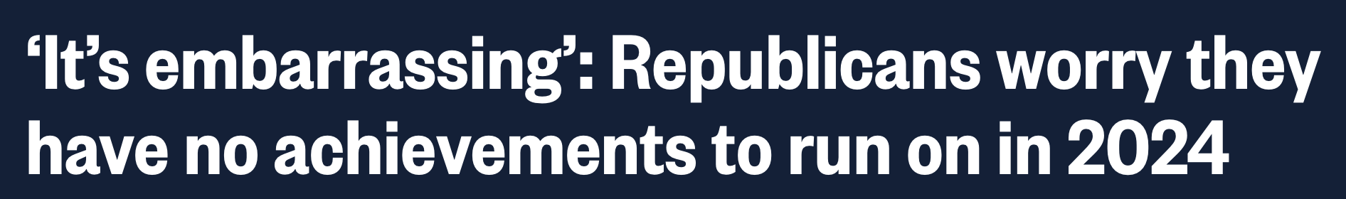 They’re so worried about getting a “win” for their base that they’re spending all their time deposing Speakers, voting on new ones, threatening to shut down the government, and conducting politically motivated investigations.