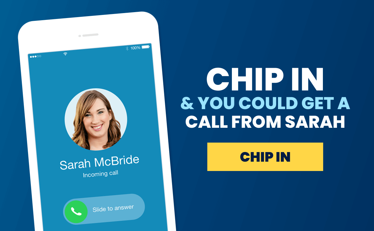 By making a donation today, you will automatically get on the list of supporters Sarah might call — and you’ll help ensure we have the resources to kick our campaign into high gear.