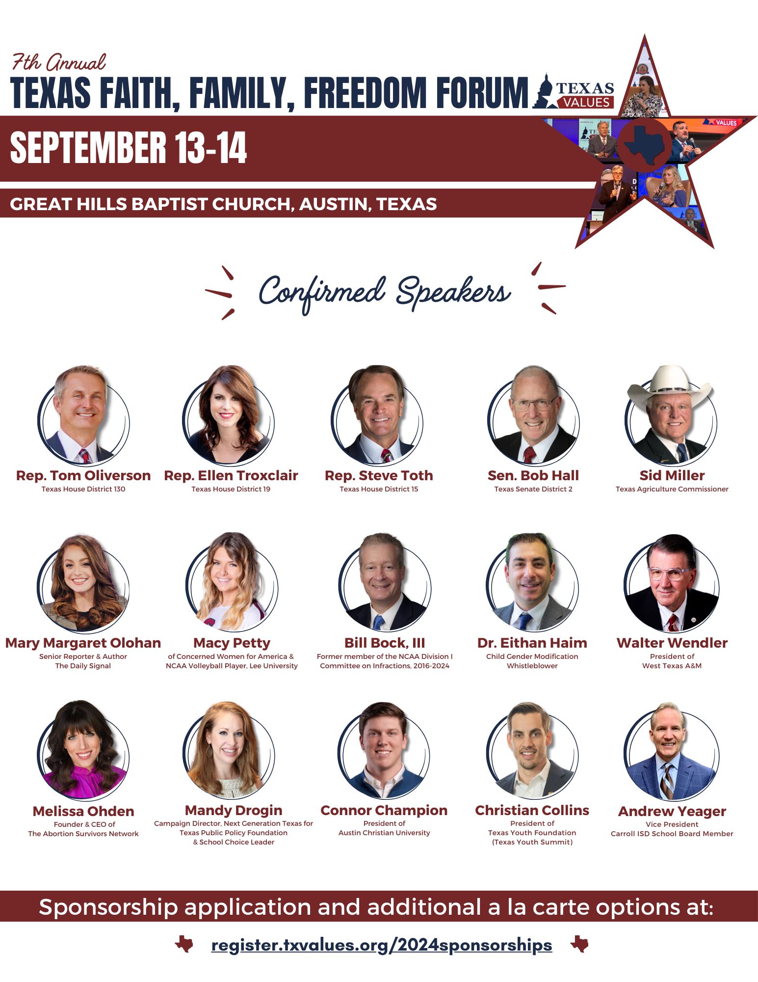 If everyone receiving this email can give $25, $50, $100, or more, we can reach our goal! Please make a tax deductible donation today to protect Faith, Family, and Freedom in Texas!