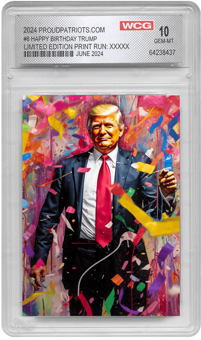 Trump's birthday is coming up, so to honor our amazing President we created this unique and beautiful collectible trading card. And we want to spread this beautiful art and be able to have as many people to celebrate his birthday with us, so we're giving it to you for just $1!