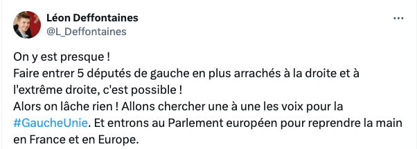 👊🏼 5% POUR NOTRE LISTE C'EST 5 DÉPUTÉ·ES DE GAUCHE EN + ET 5