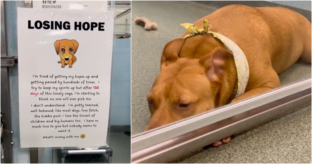 Cheery Shelter Dog Loses Hope And Shuts Down, Staff Affixes Sign To Kennel