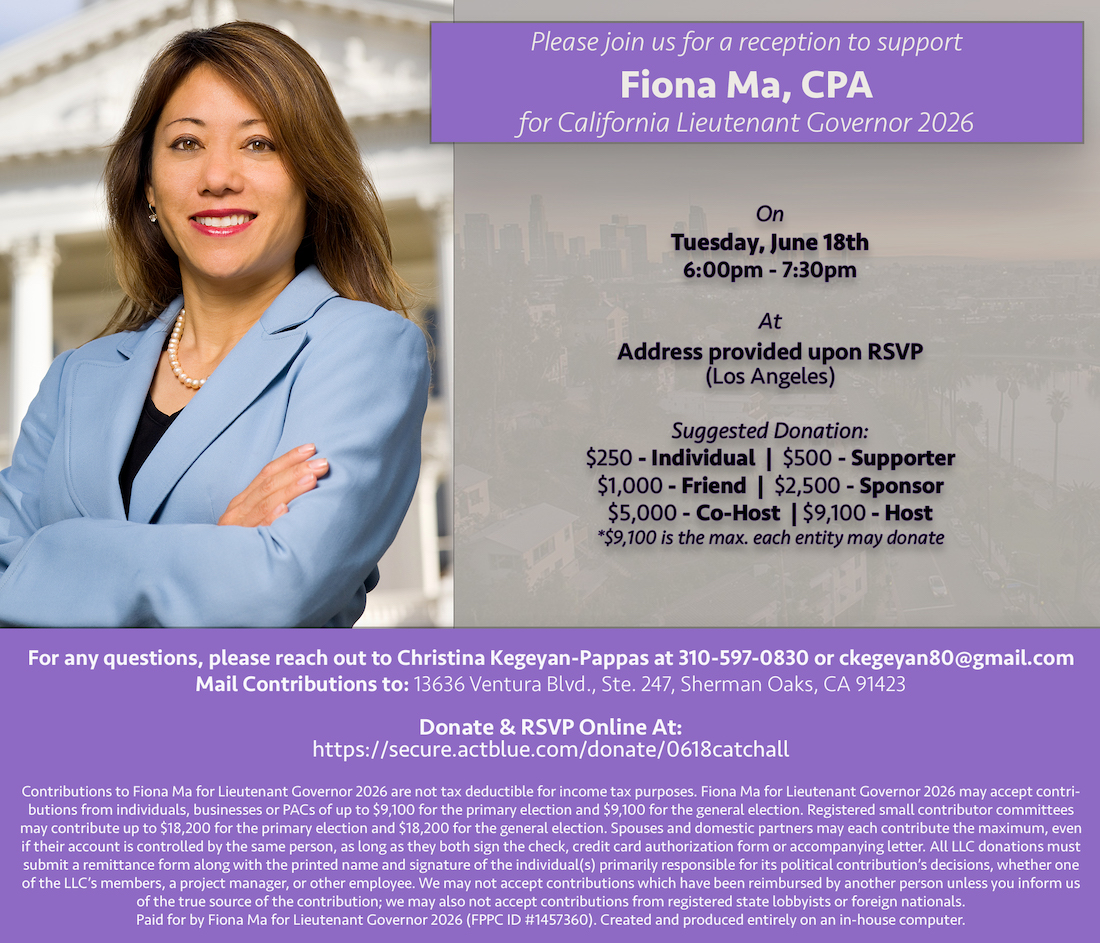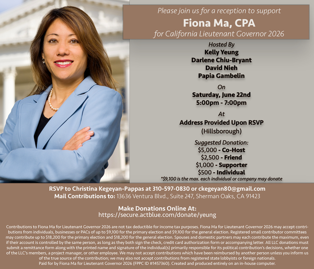 Paid for by Fiona Ma for Lieutenant Governor 2026, FPPC ID #1457360. Created and produced entirely on an in-house computer.