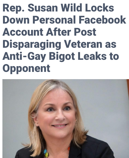 "Pennsylvania Rep. Susan Wild, one of the most vulnerable House Democrats up for reelection, has locked down her Facebook account after catching flack for baselessly claiming a military veteran in her district was an anti-LGBT bigot."