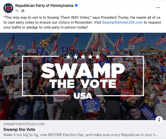 Listen to President Trump and request a ballot, check voter registration status, get registration details, pledge to vote early in person, or pledge to vote on Election Day.